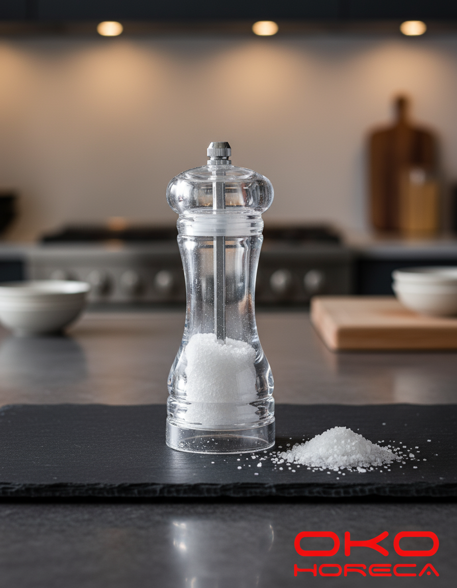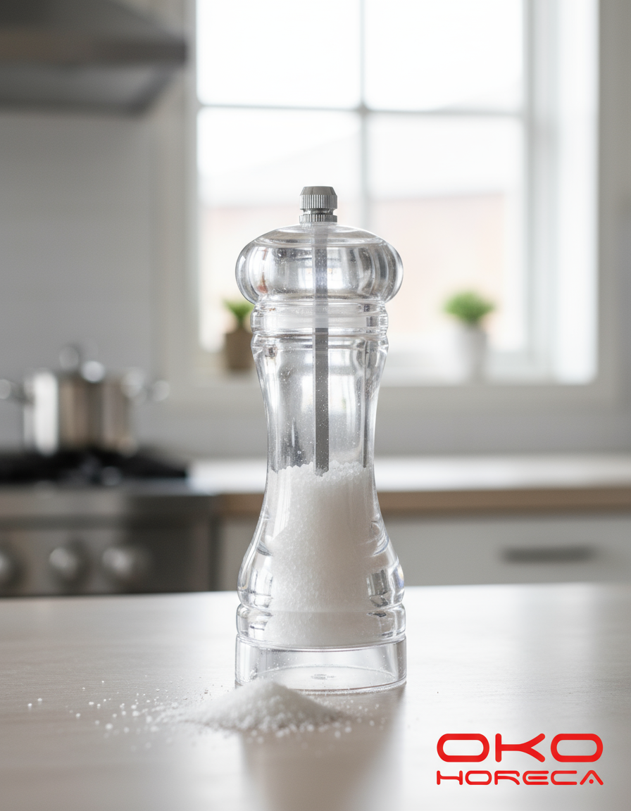 Praktik dhe modern, ky mjet bluarës i tejdukshëm është perfekt për piper, kripë apo erëza të ndryshme. Dizajni i tij i pastër dhe elegant e bën të lehtë kontrollin e sasisë së mbushur, ndërsa mekanizmi i qëndrueshëm siguron bluarje uniforme dhe të freskët.